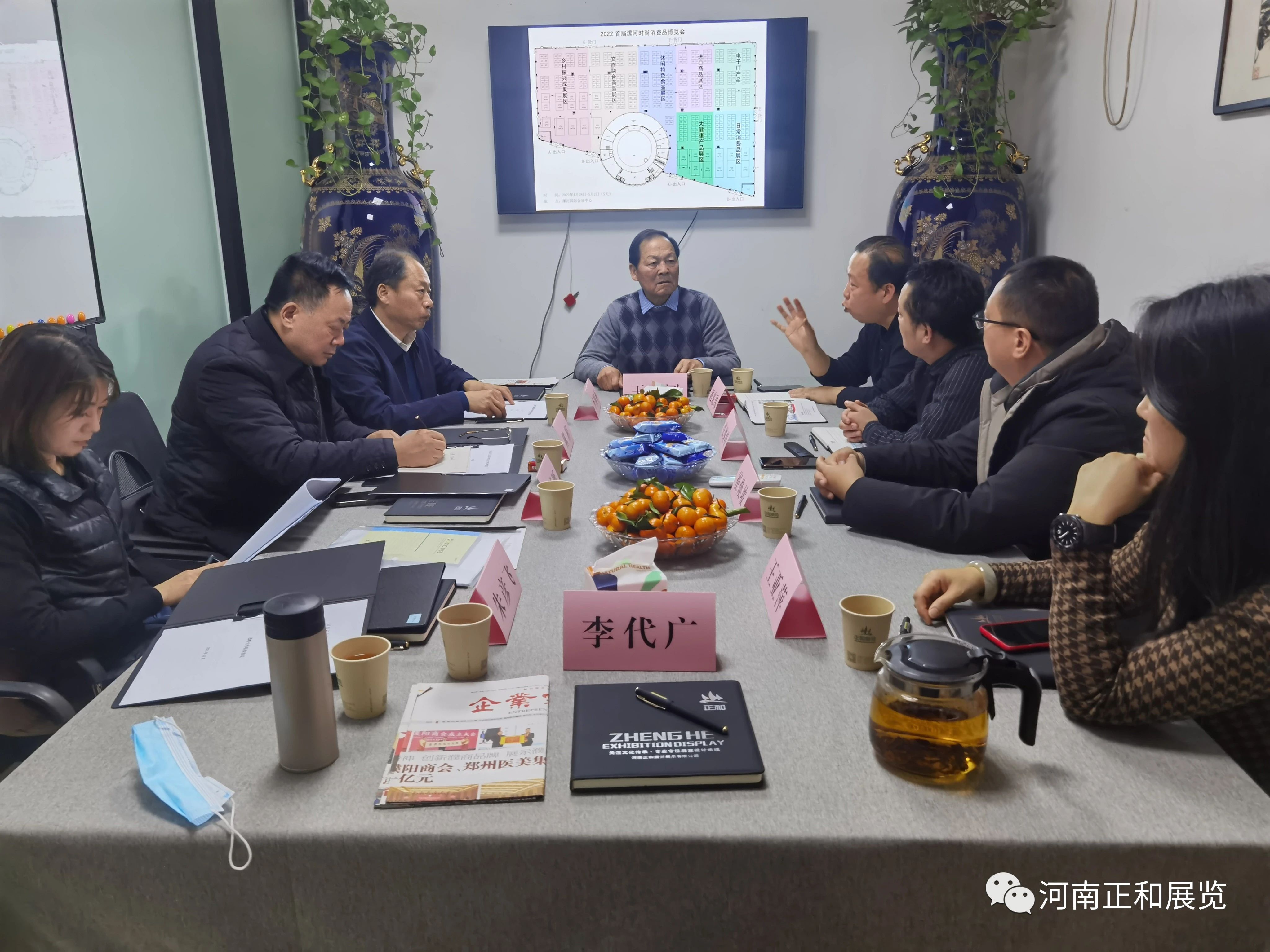 签约仪式前,双方在河南正和展览展示有限公司会议室举行了座谈会,就共同支持漯河会展经济发展进行了探讨交流,同时,就2022首届漯河时尚消费品博览会的筹备情况进行了研讨。